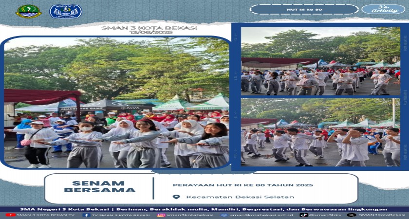 (Bekasi, 14 Agustus 2025). Dalam rangka memperingati Hari Ulang Tahun (HUT) Gerakan Pramuka ke-64, SMA Negeri 3 Bekasi menggelar upacara bendera yang berlangsung khidmat di lapangan. Up