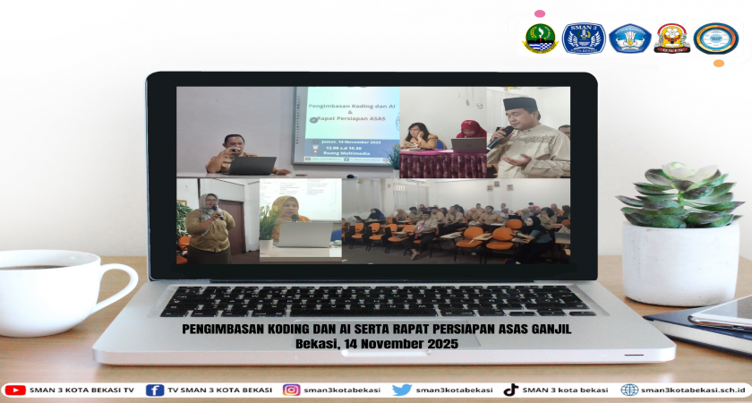 (Bekasi, 14 November 2025). SMA Negeri 3 Bekasi menyelenggarakan kegiatan Pengimbasan Pelatihan Koding dan Kecerdasan Artificial (AI) yang bertempat di ruang multimedia. Kegiatan ini diikuti oleh Bapak kepala sekolah, Wakasek beserta staf dan seluruh Dewan Guru.